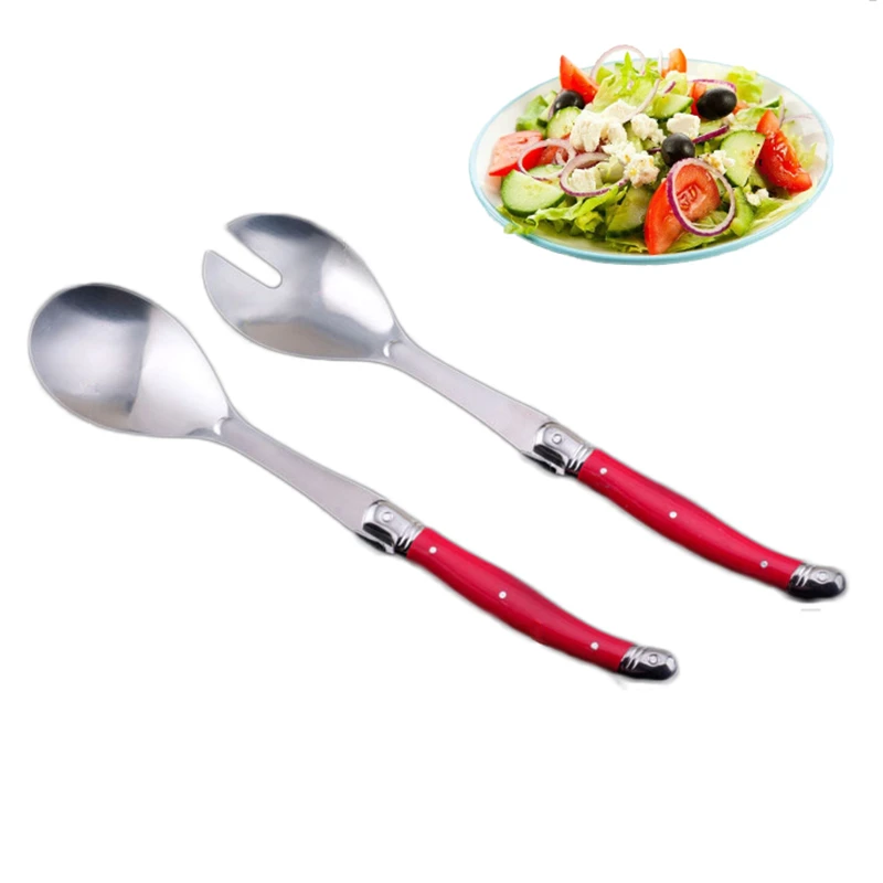 304 Stainless Steel Salad Spoon Set, Red Handle Scoop, High Class Wooden Box Spoon, Fruit and Cake Dinnerware, 2Pcs Set