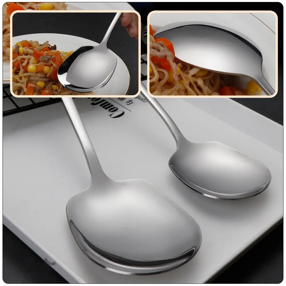 2pcs Stainless Steel Serving For Dining Hall Restaurant Home Large Capacity Easy Cleaning Ergonomic Handle Reusable Soup Salad