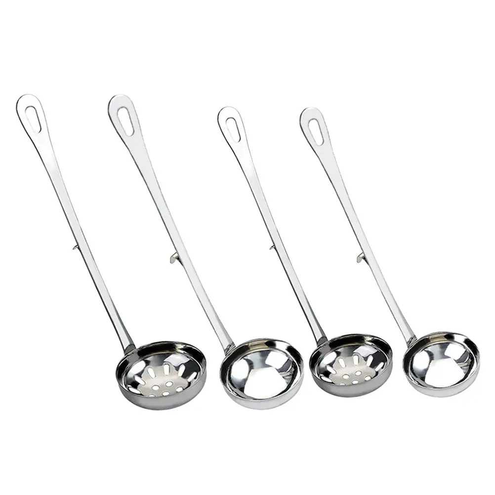 4Pcs Hot Pot Colander Spoon Set Stainless Steel Fine Holes Long Handle for Oil Soup Separation Hangable Scoop Ideal for Kitchen