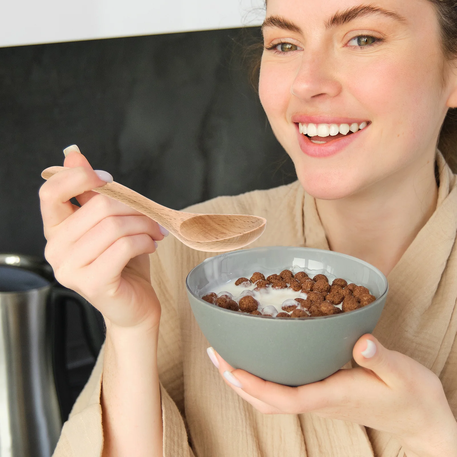 7Pcs Wooden Spoon Set Japanese Style Fine Wood Finish Comfortable Grip for Ice Cream Desserts Honey Natural Grain Kitchen