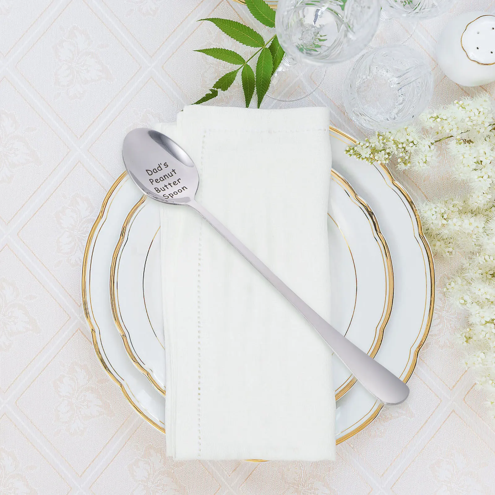 5 pcs Stainless Steel Spoons Set Christmas Pattern Dessert Coffee Tea Serving Spoons For Home Restaurant Cafe Party Xmas Gift