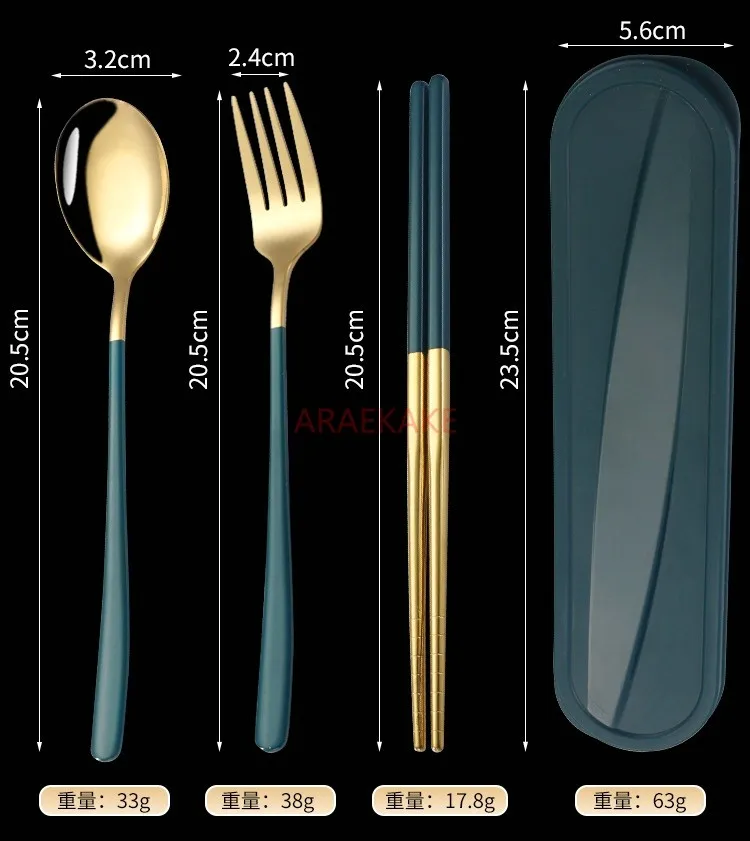 Stainless steel chopsticks, spoons, portable tableware three piece set, storage tableware box, travel set