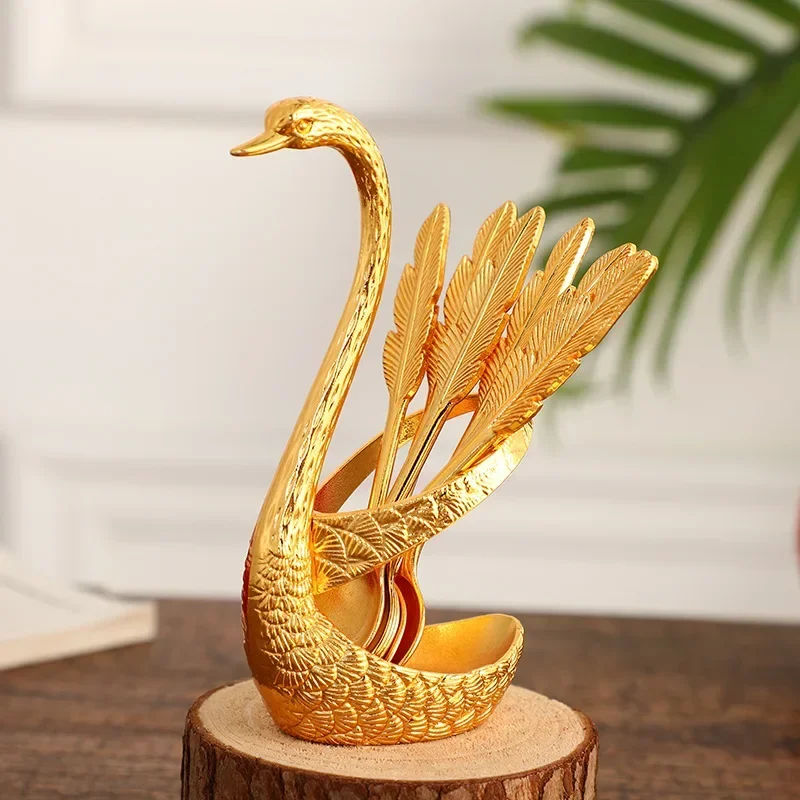 Light luxury swan feather spoon household dessert coffee fruit spoon creative high-end restaurant classical tableware