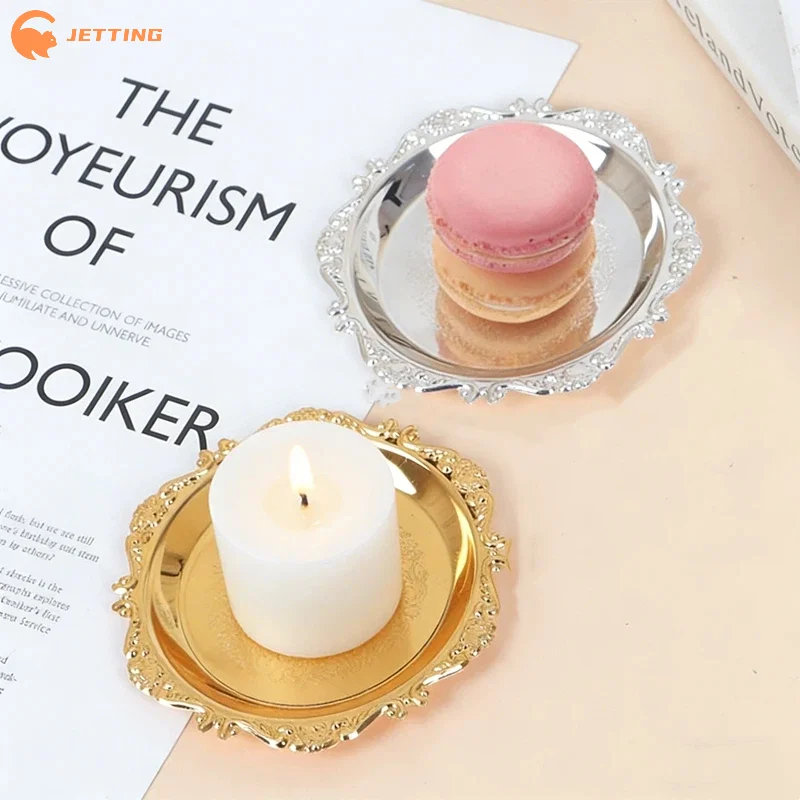 1PCS 10cm Silver Golden Iron Tray Buffet Fruit Cake Dessert Sundries Storage Plates Party Supplies Glossy Plate for Decoration