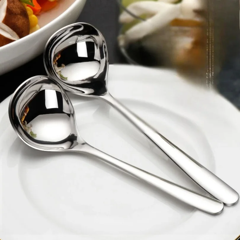 1PC Stainless Steel Soup Spoon Thickened Long Handle Commercial Household Soup Large Soup Watermelon Round Spoon