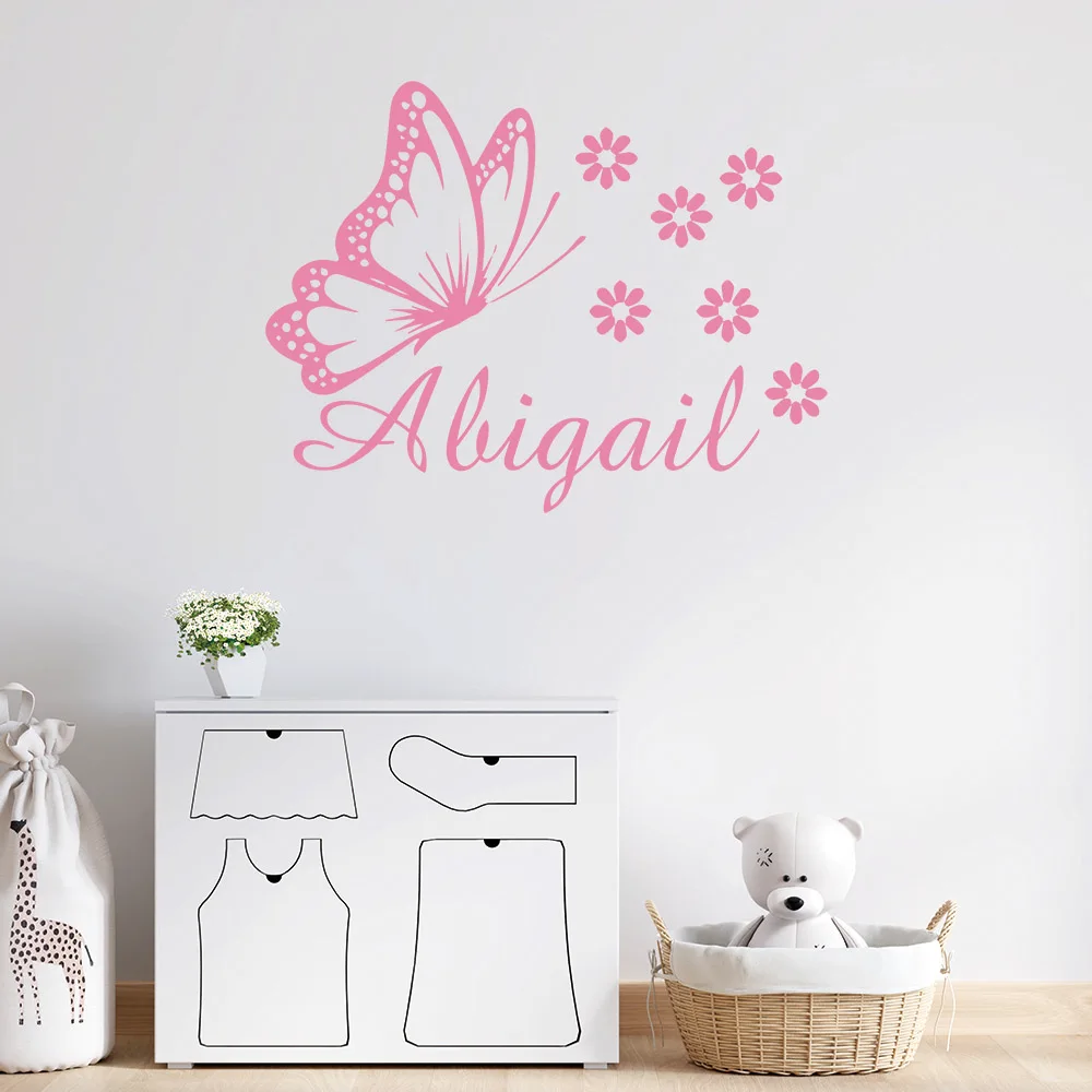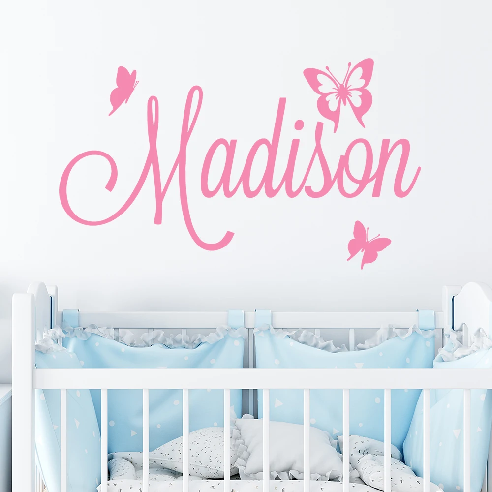 1pc Cartoon Style Personalize Custom Name Butterfly Wall Stickers Modern Fashion Wall Sticker For hallway Art Decor Wallpaper
