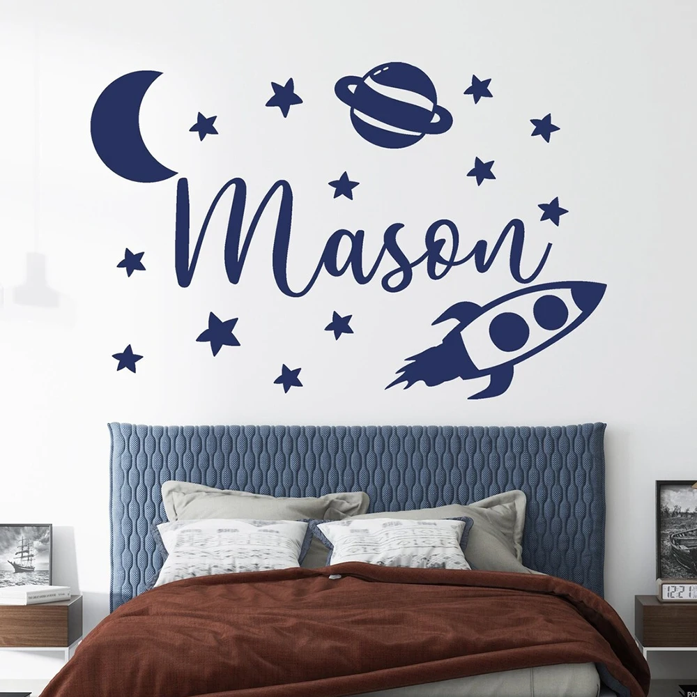 1pc Hot Personalize Custom Name Rocket Wall Art Decal Wall Stickers Pvc Material For Living Room Wall Art MURAL