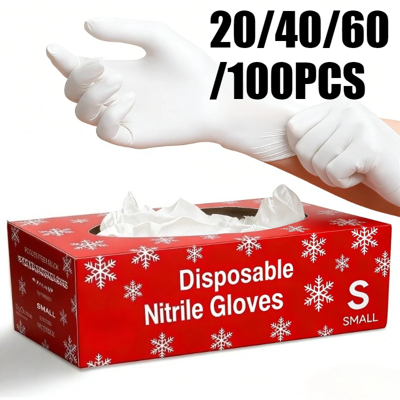 20/40/60/100PCS Disposable White Nitrile Gloves Home Cleaning Kitchen Bathroom Cleaning Hairdressing Beauty Pet Bathing Gloves