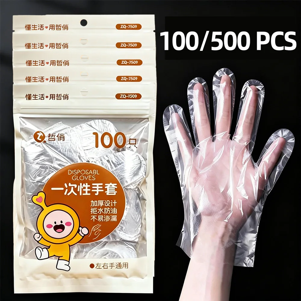 1000/100pcs Plastic Disposable Gloves Food Grade Transparent One-off Gloves for Fried Chicken Pizza BBQ Mitten Kitchen Tableware