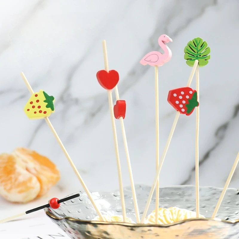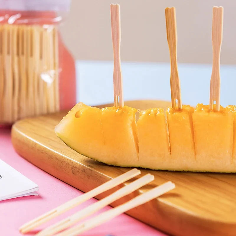 100/200/750pcs Disposable Fruit Fork Cake Picks Fruit Bamboo Stick Fork Mini Cocktail Forks Party Supplies for Appetizer Dessert