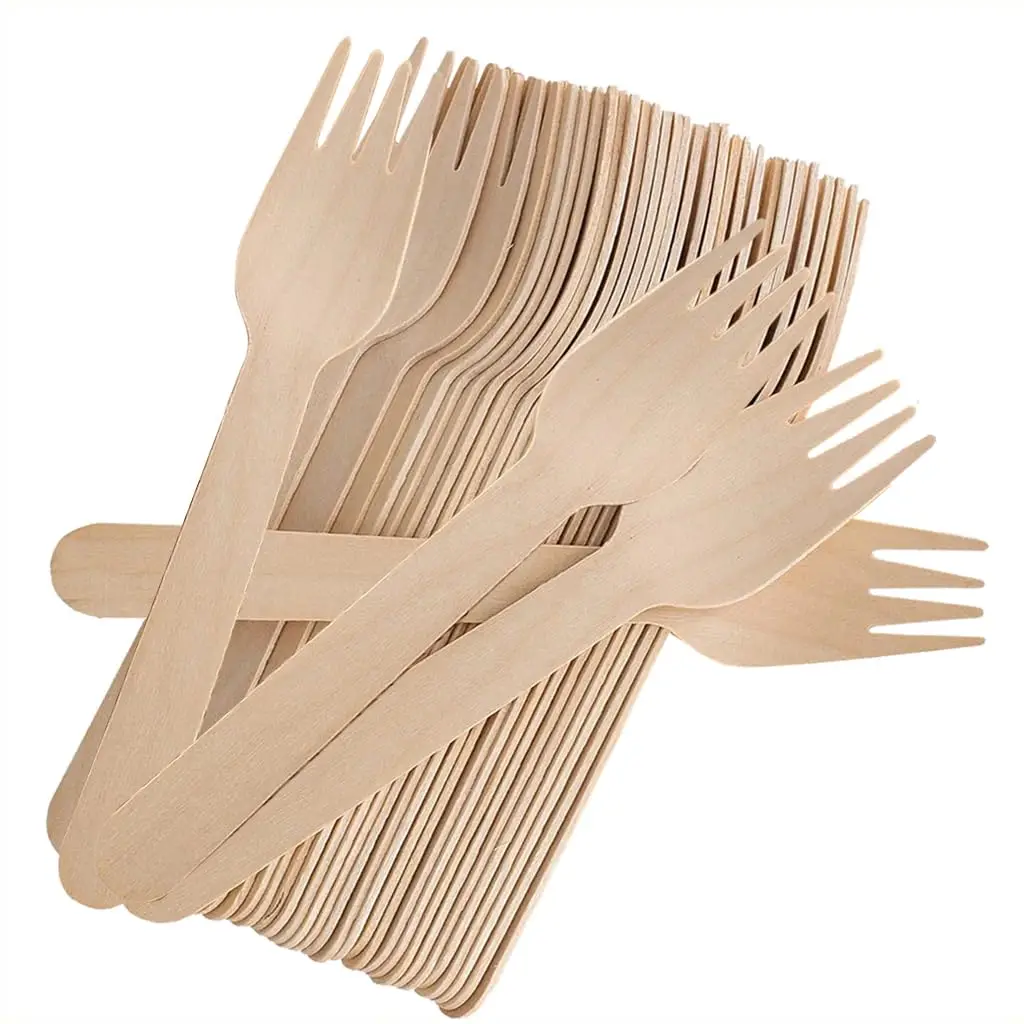 50PCS Disposable Wooden Forks Birthday Party Restaurant Wedding Outdoor Picnic Fast Food Cake Dessert Wooden Forks