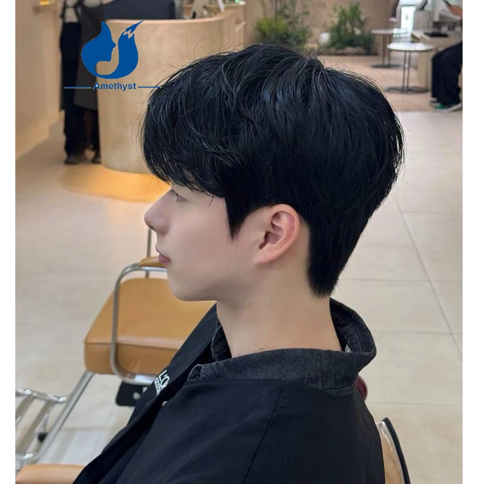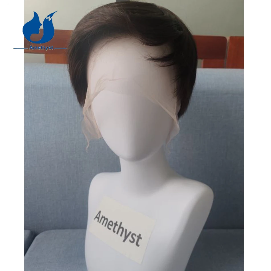 Amethyst Brazilian Remy Human Hair Wig for Men Shaved Straight Pixie Cut Pre Styled Full Lace Wig Natural Black Bleached