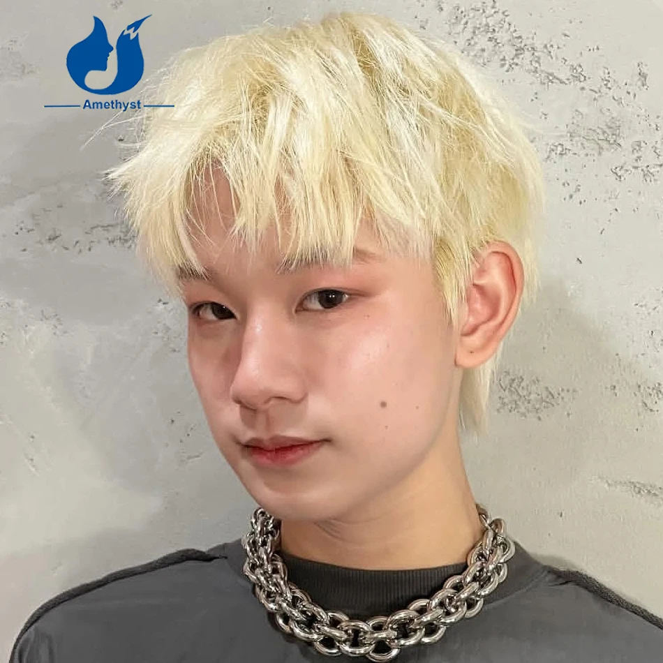 Amethyst Brazilian Blonde Pixie Cut Full Lace Wig Short Bob for Men Remy Hair Pre Styled Layered Wig Shaved with Sideburns