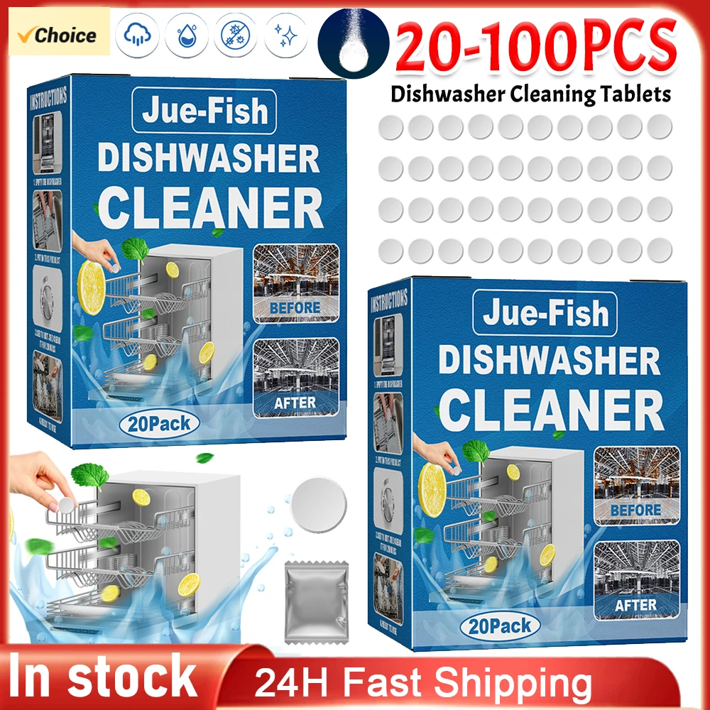 20-100pcs Dishwasher Cleaner Removes Limescale Odor Deodorizer Tablets Strong Oil Stain Removal Kitchen Cleaning Tools