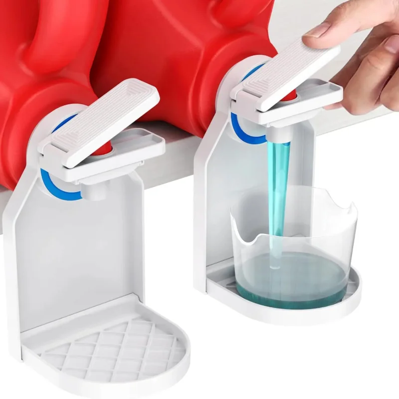 A set of laundry detergent dispenser cup holder, upgraded nozzle button and organization of the laundry cup holder and drip tray