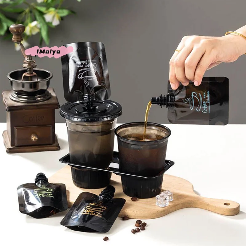 10Pcs Black Self-Standing Plastic Coffee Tea Bags 50/100ML Liquid Suction Nozzle Portable Pouch for DIY Cocoa Matcha Travel