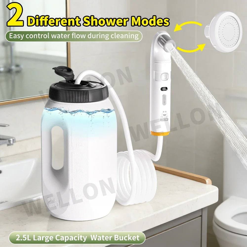 WOWER 1600mAh Portable Bidet for Women/Men with 2 Pressure Modes 2.5L Waterproof Bidet Toilet Shower Sprayer for Camping Hiking