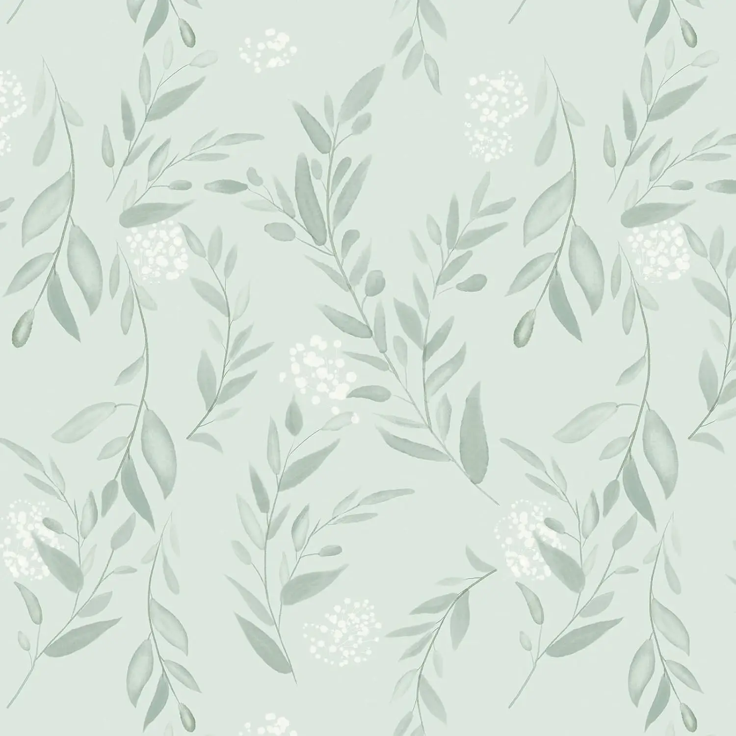 Sage Green Leaf Peel and Stick Wallpaper Boho Green Floral Contact Paper Removable Self Adhesive Wallpaper for Bathroom Cabinets