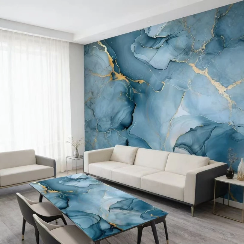 Gold Blue Marble Pattern Self-adhesive Wallpaper for Home Decoration Background Wall Personalized and Fashionable Wallpaper