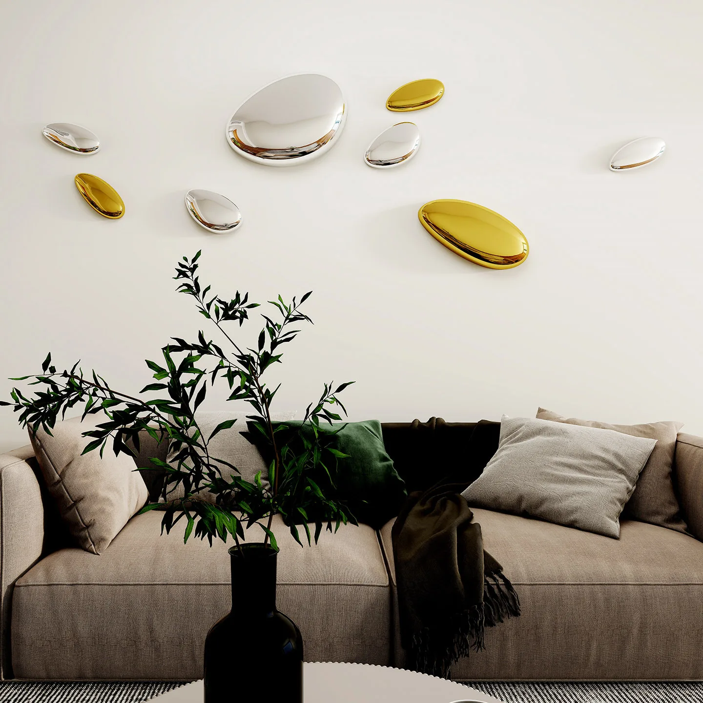 Electroplated Mirror Cobblestone Living Room Sofa Background Wall Decoration Wall Pendant Modern Minimalist Art High Sense