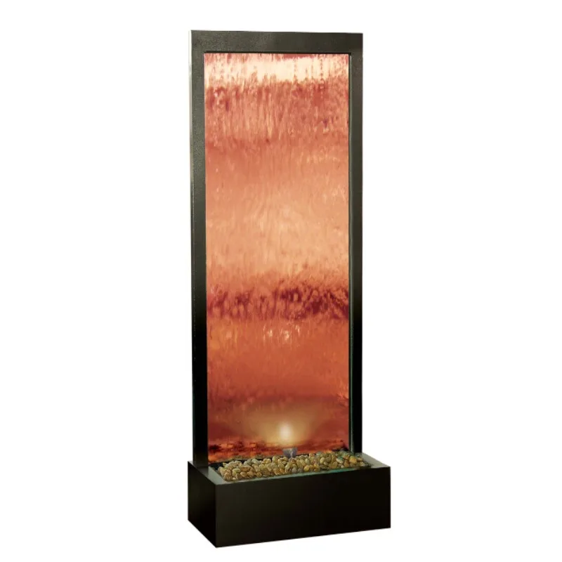 Outdoor artificial wall glass indoor waterfall fountain, indoor bronze mirror waterfall
