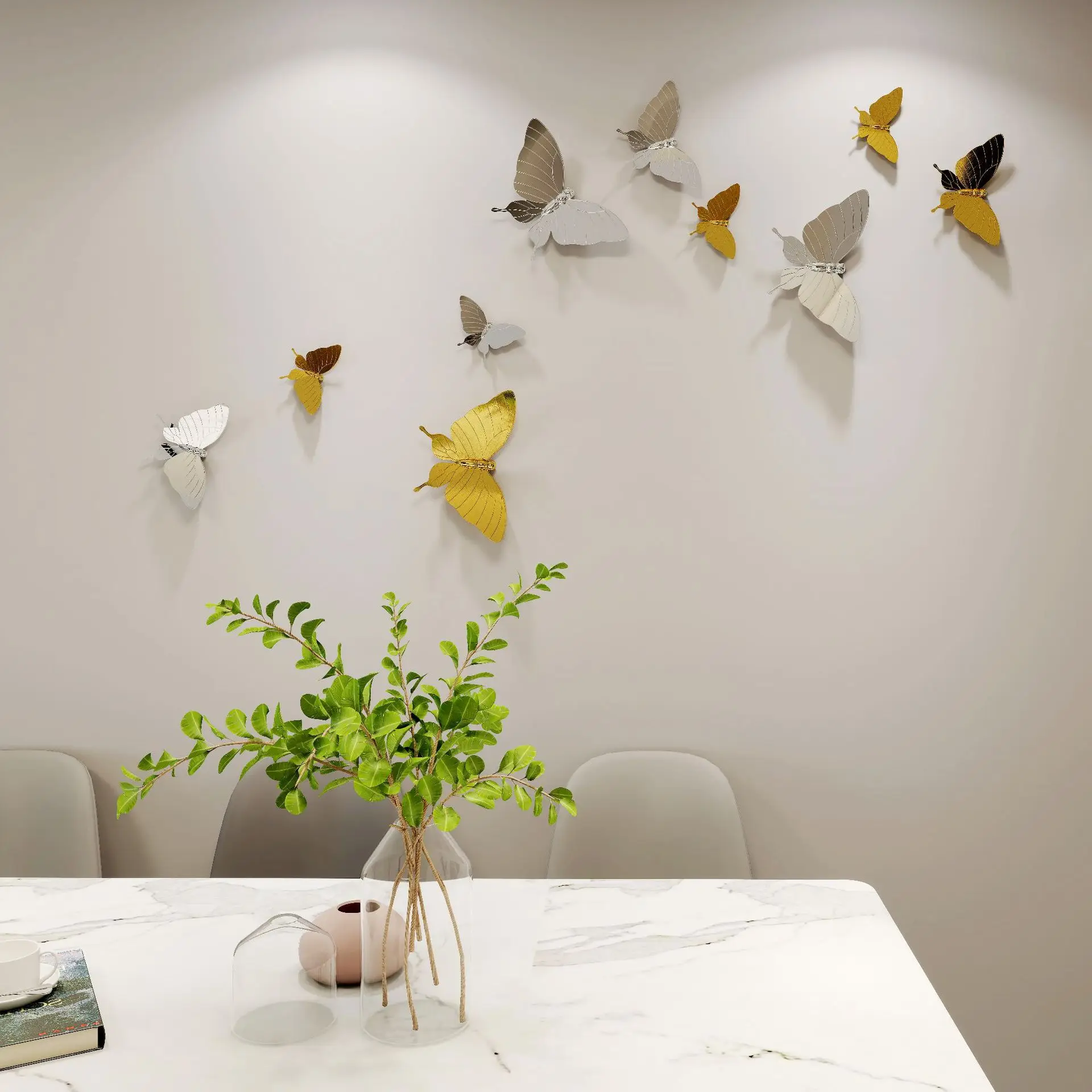 Three-dimensional Butterfly Decoration Restaurant Background Wall Imitation Metal Electroplating Wall Pendant Art 3D Creative Wa