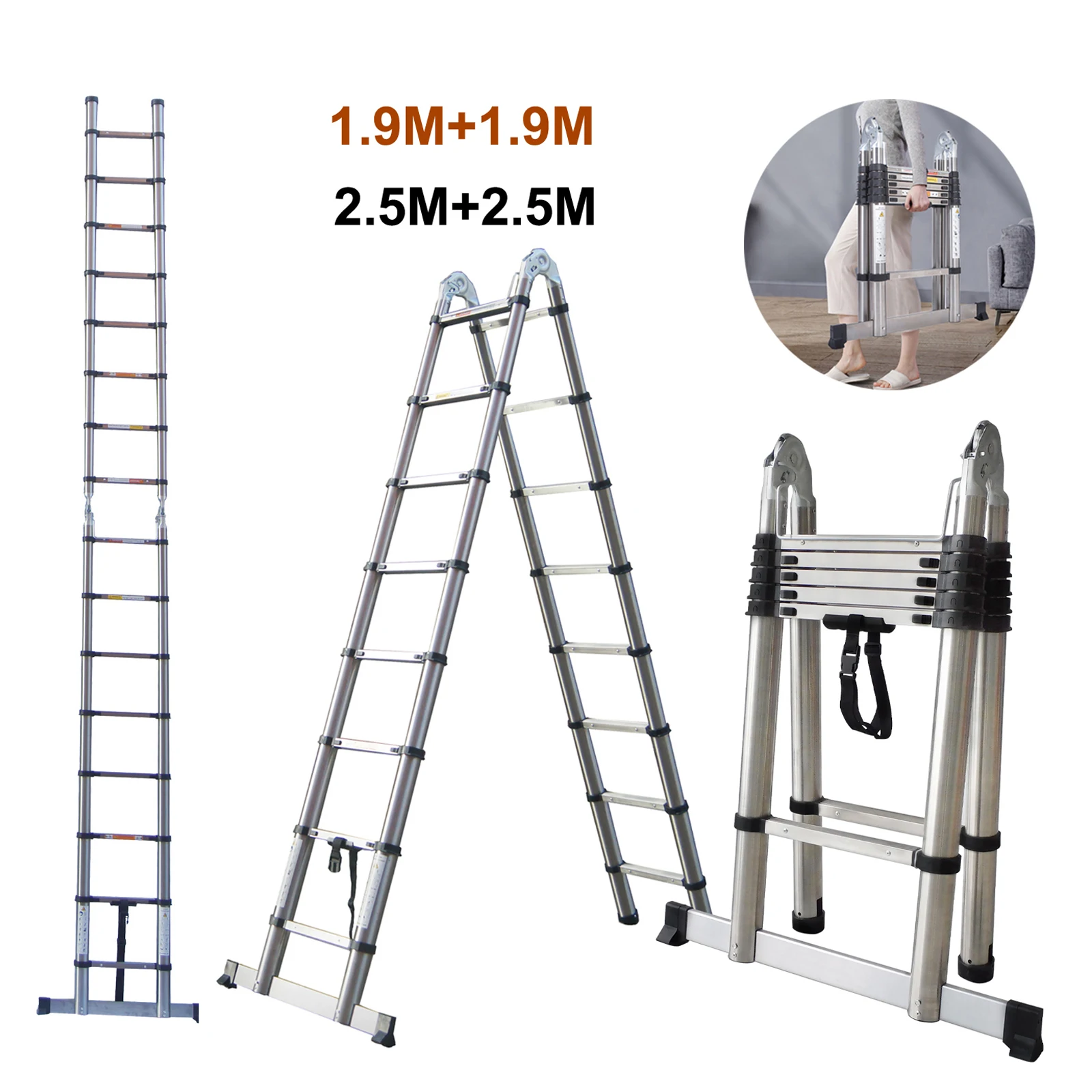 Telescopic Ladder Stainless Steel 3.8M / 5M Multi-Purpose Extendable Folding Step A-frame Ladder Non-Slip