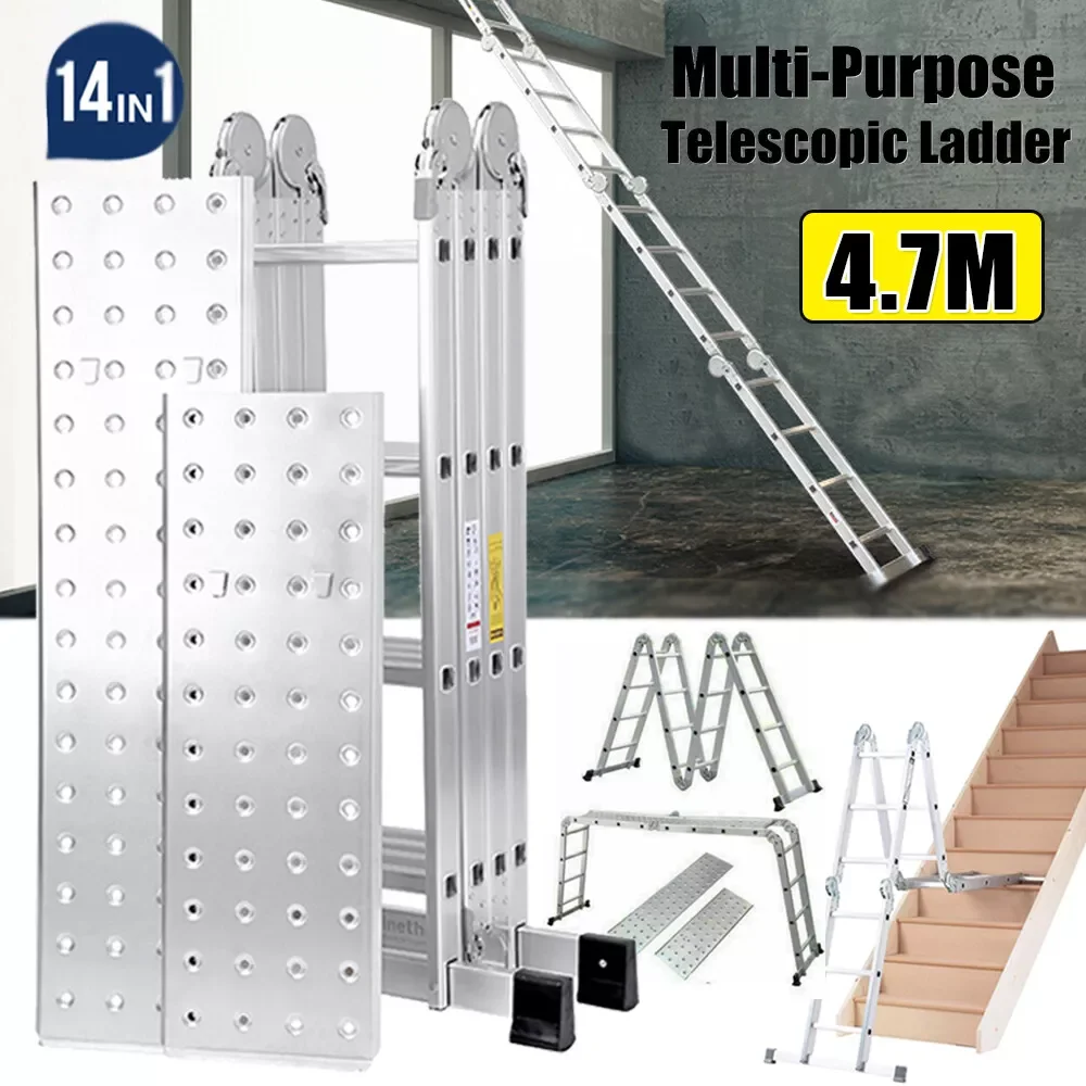 4.7M Folding Combination Ladder Multi-Purpose 14 IN 1 Aluminium Folding Step Ladder With Scaffold Platform