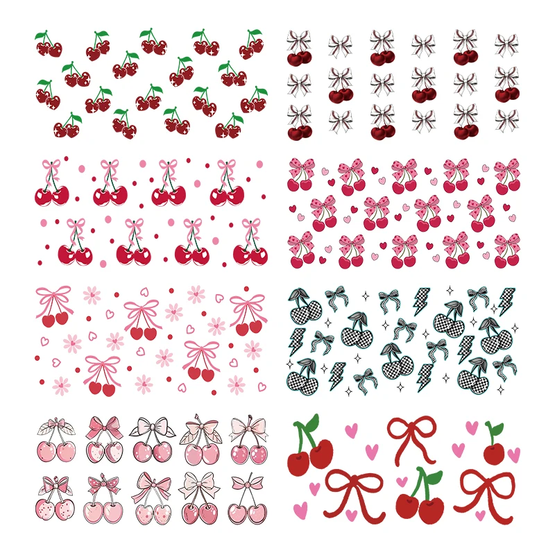 3D UV DTF Fruit Cherry Printed Transfers Stickers 16oz Cup Wraps For DIY Glass Ceramic Metal Leather Etc. D30509
