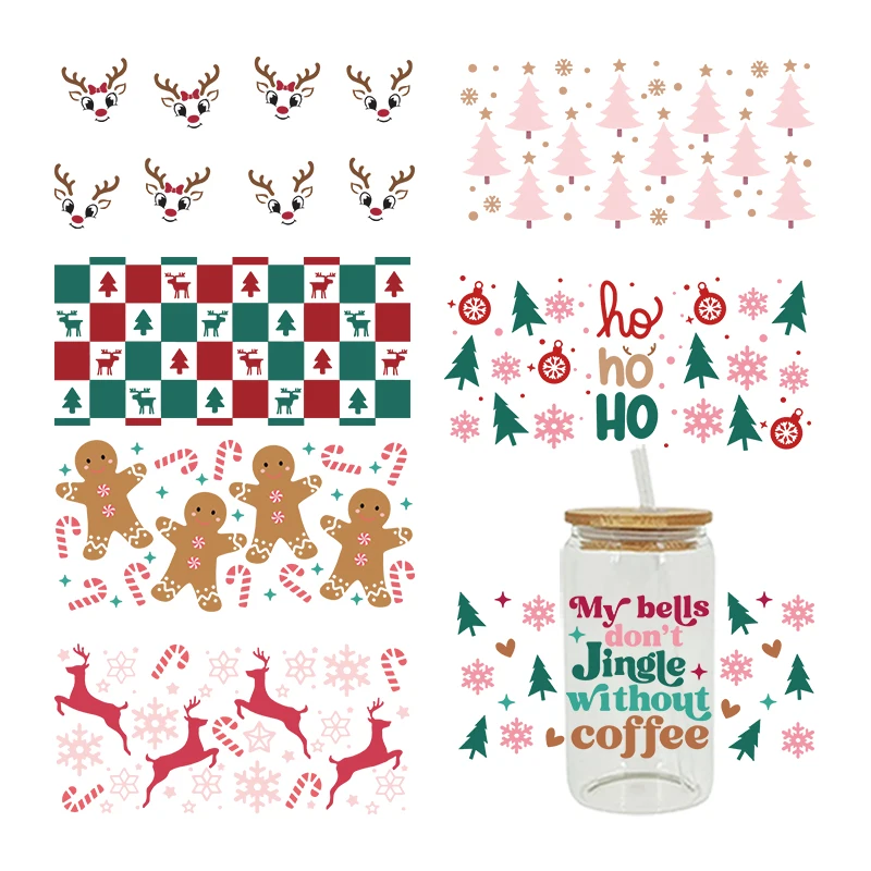 3D UV DTF Transfers Stickers, 16oz Cup Wraps, Merry Christmas Printed for DIY Glass Ceramic Metal Leather Etc D6648