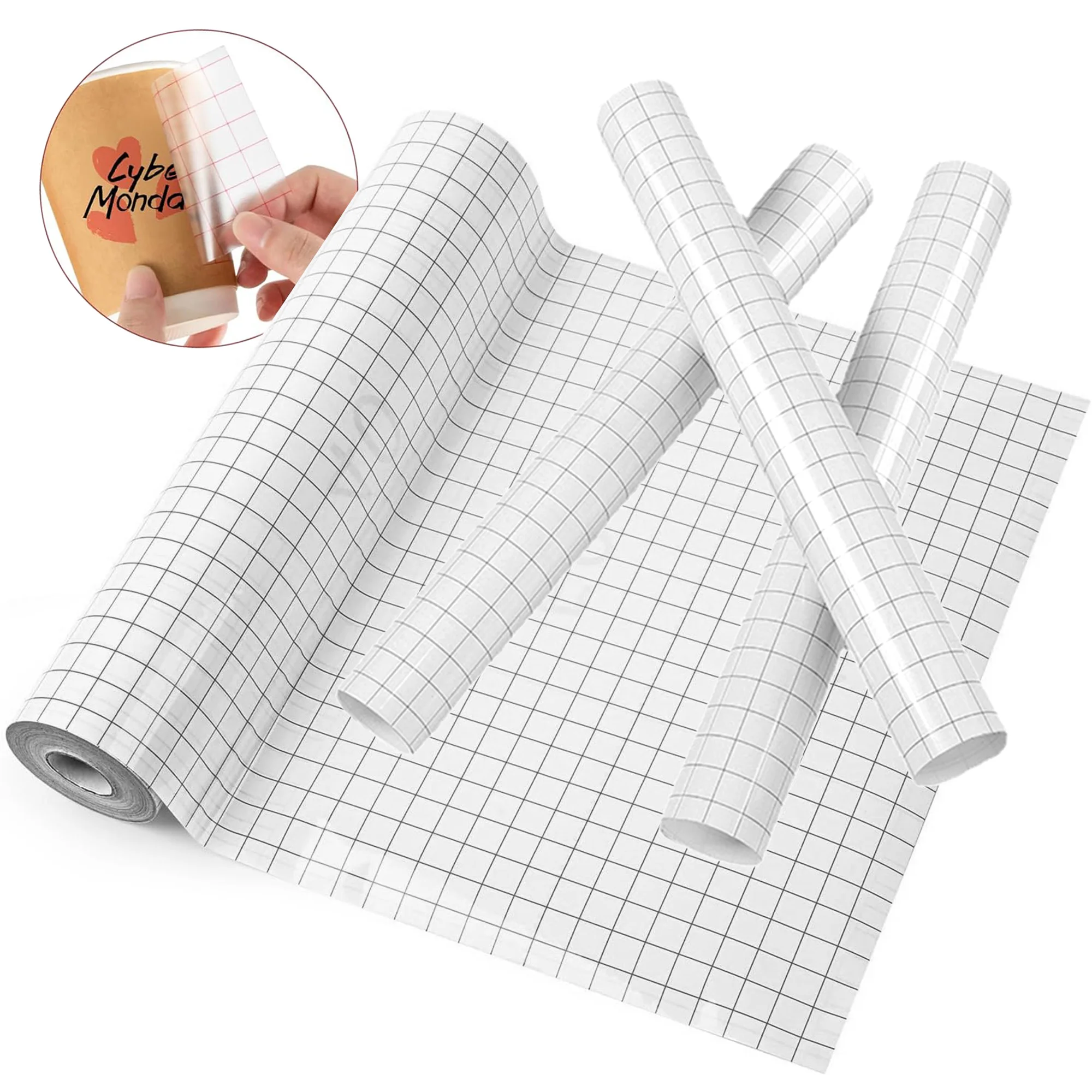 Clear Vinyl Transfer Paper Tape Roll w/Alignment Grid Application Tape for Silhouette Cameo, Adhesive Vinyl for Decals, Signs