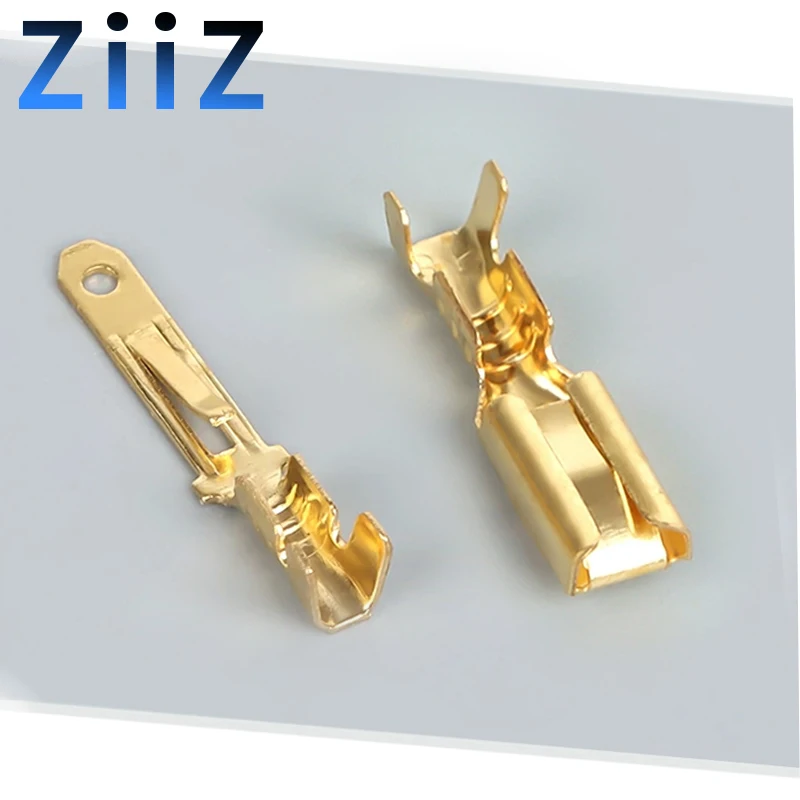 50/100 pieces 2.8mm automotive crimp terminal male/female saddle connector brass pin ZiiZ crimp terminal DJ611-6.3A gold-plated