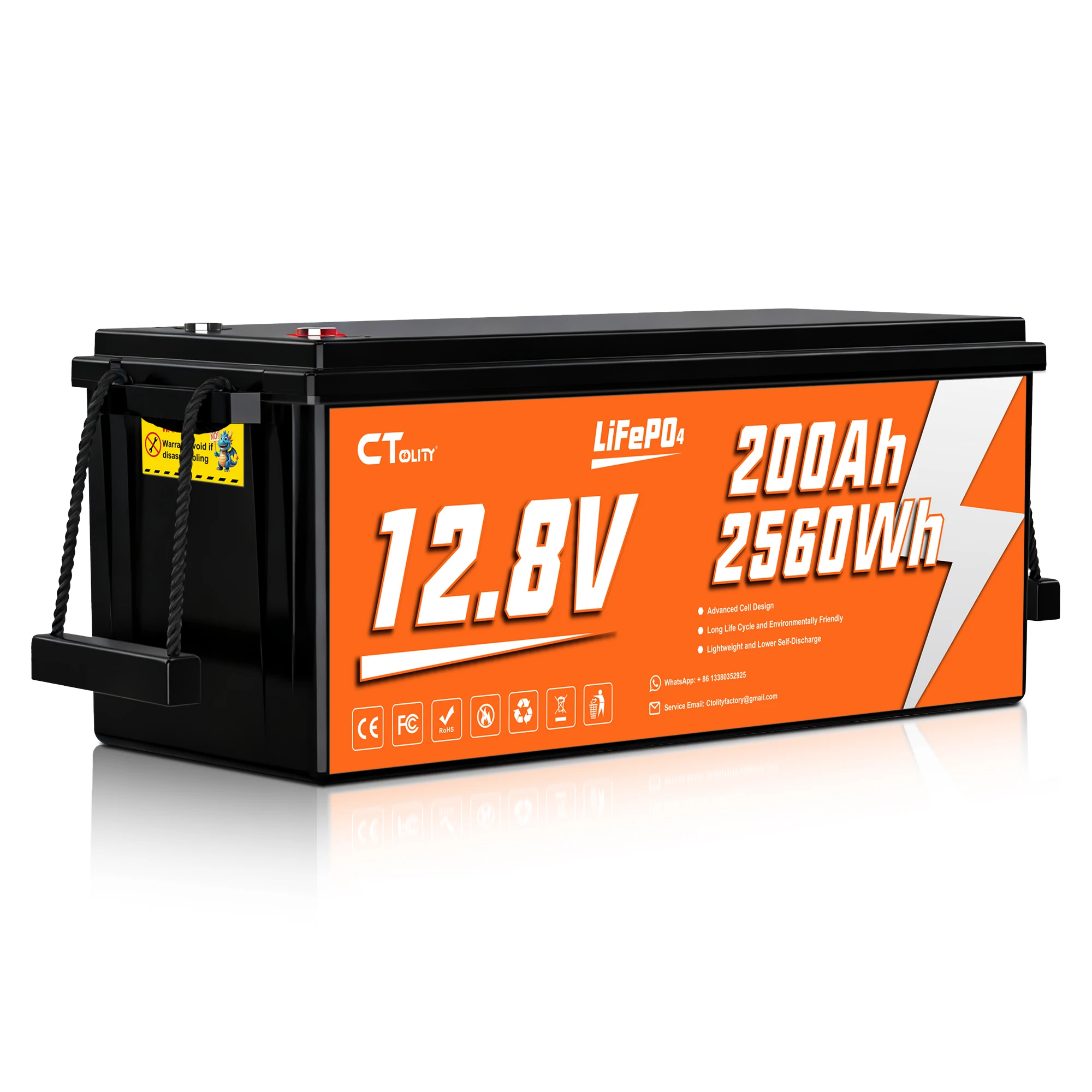 CTOLITY 200Ah 2560Wh 12.8V LiFePO4 Battery Built-in 200A BMS A Grade Cells Max 2560W 4000+ Cycle Solar Generater RV