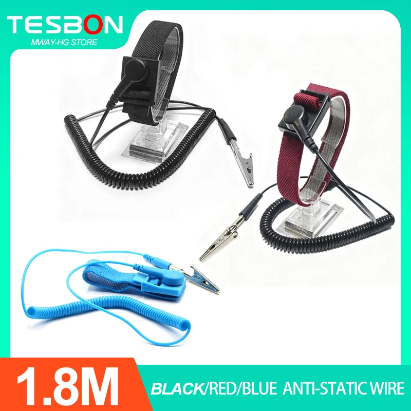 1.8M Adjustable Anti Static Bracelet Electrostatic ESD Discharge Cable Wrist Band Strap Hand Grounding wired Clip
