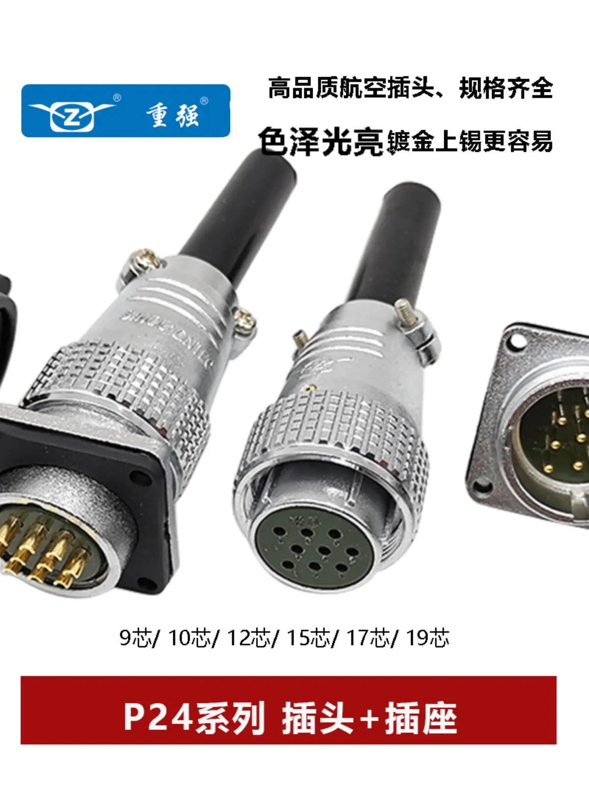 Heavy duty aviation plug male and female square socket P24-9 10 12 hole 15 17 core 19 connector cable
