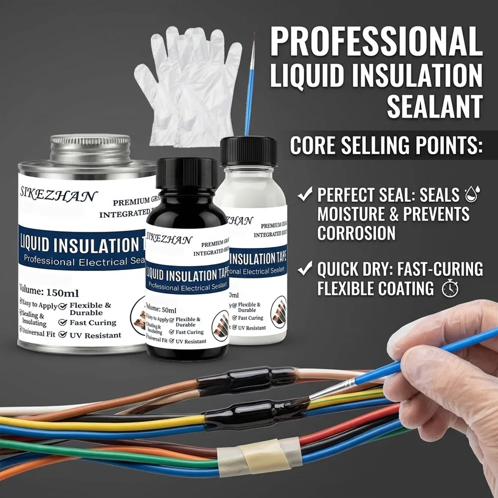 SIKEZHAN Liquid Electrical Tape - Professional Waterproof Insulation Glue for Wire Repair, Black & White Sealant Kit