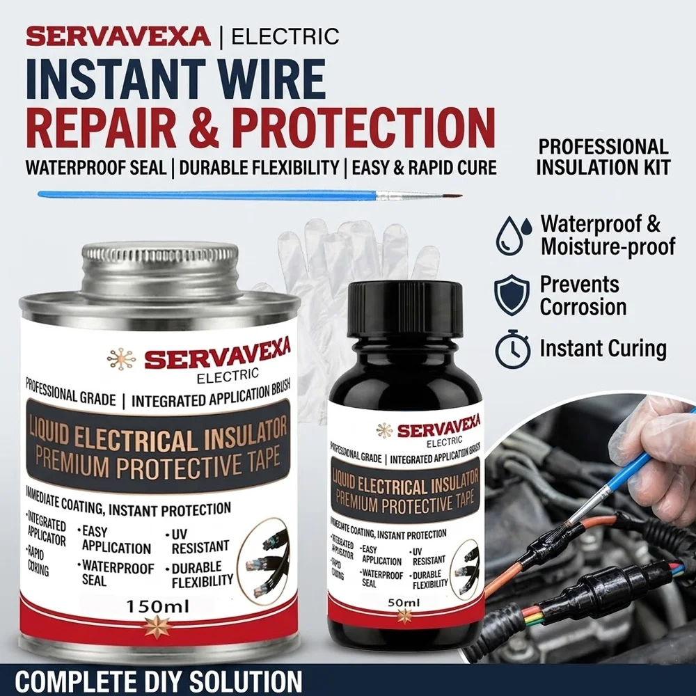 SERVAVEXA Professional Liquid Electrical Insulator , Waterproof Rapid Cure Wire Repair Kit with Detailing Brush & Gloves