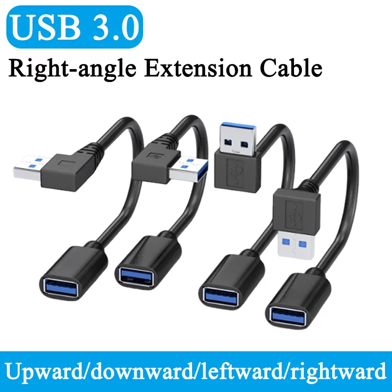 USB 3.0 Right Angle Data Extension Cord USB 90 Degree Male to Female Power Connection Cable Up/Down/Left/Right Bends Extension