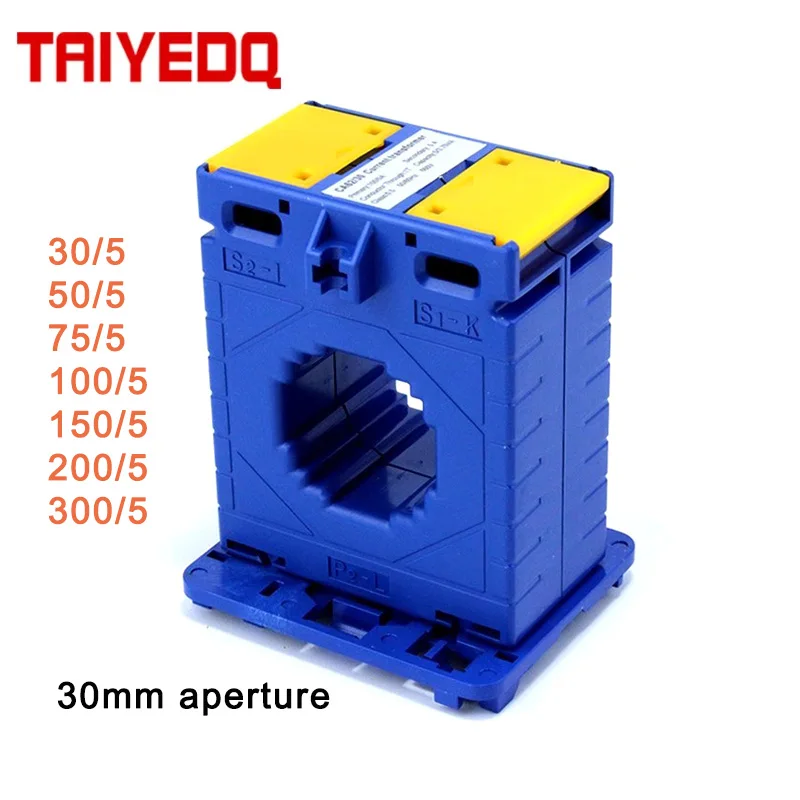 Current Transformer 30mm Aperture Din Rail 50/5 100/5 150/5 200/5 300/5 Copper Coil Blue Shell