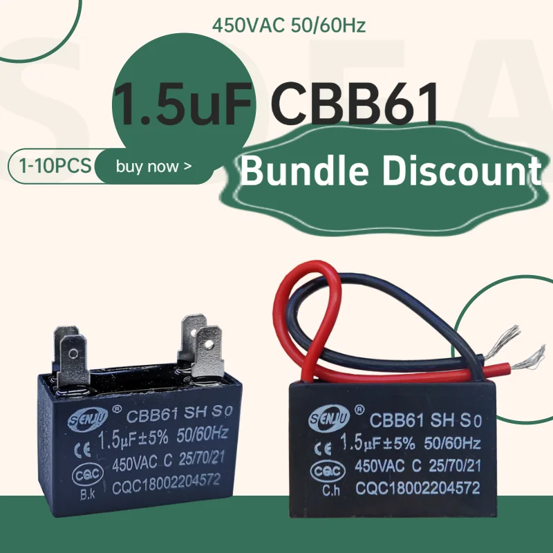 CBB61 1.5uf 450V AC Fan Capacitor For Air Conditioning External Fan Range Hood Motor
