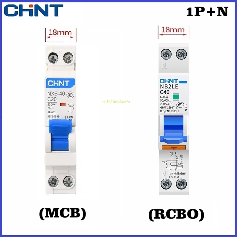 CHINT 18MM MCB RCBO NXB-40 NB2LE 30ma TypeAC Curve C DPN DPNL Residual Current Operated Circuit Breaker DZ267 DZ267LE