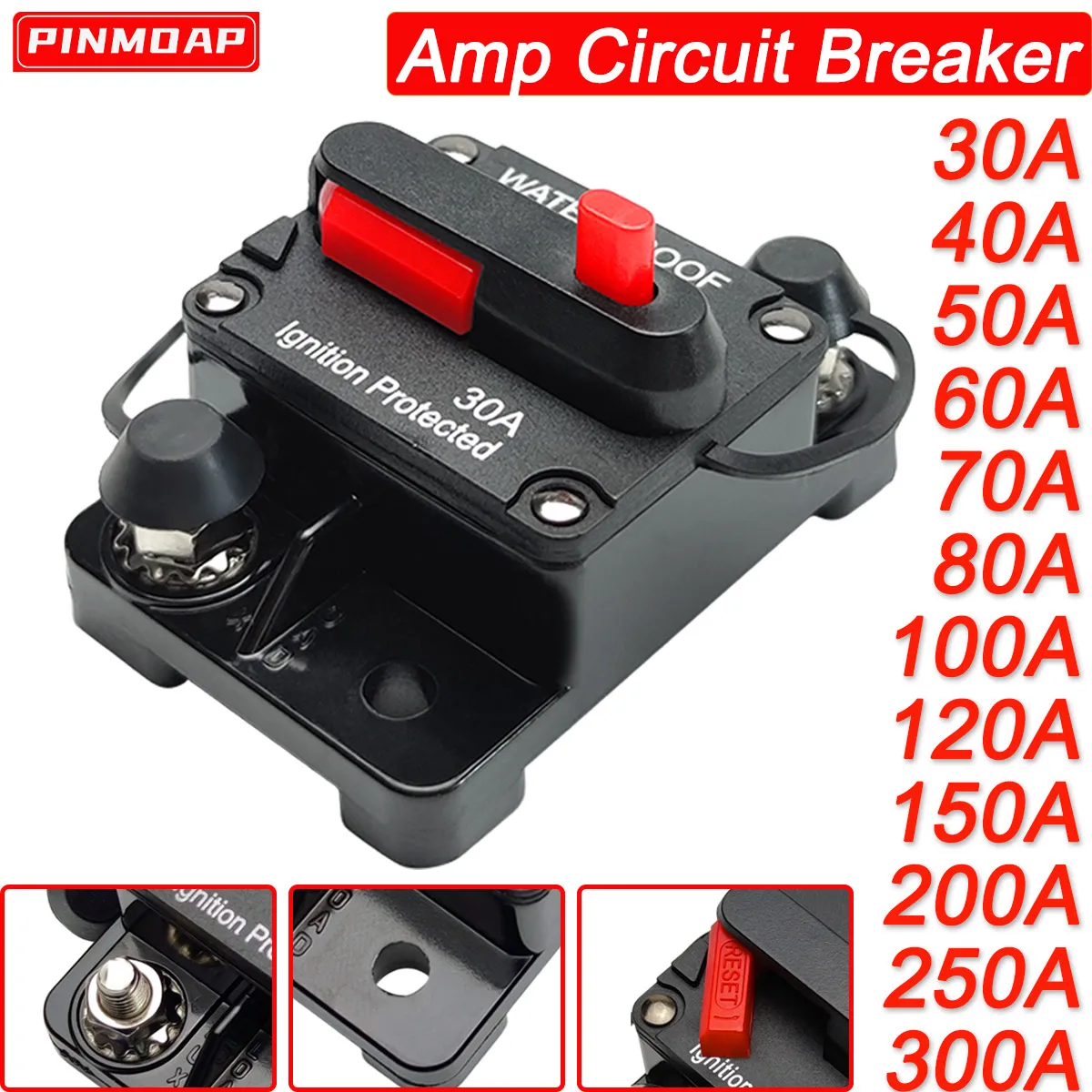 Manual Reset Fuse Circuit Breaker Power Protection 30A-300A 12V-48V DC Waterproof Circuit Breaker Suitable For Car Audio Systems