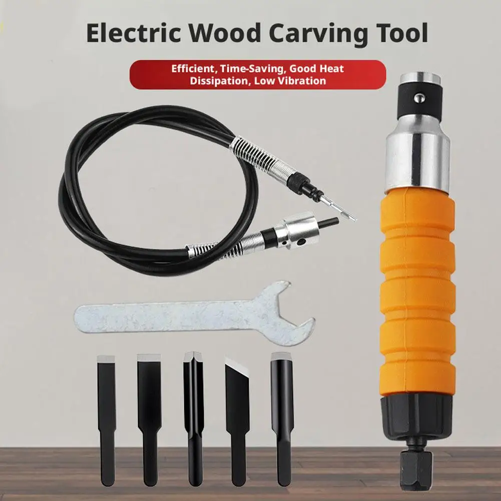 Electric Wood Chisel Carving Tool, Hand Carving Chisel with Wrench Chuck Attachment 5 Blades Flexible Shaft Woodworking Woodcut