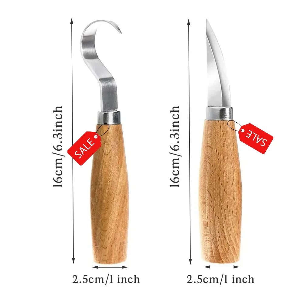 2Pcs Wooden Carving Hook Knives Set for Beginners Professional Beech Wood Handle Peeling Carving Chisels Kitchen Tools