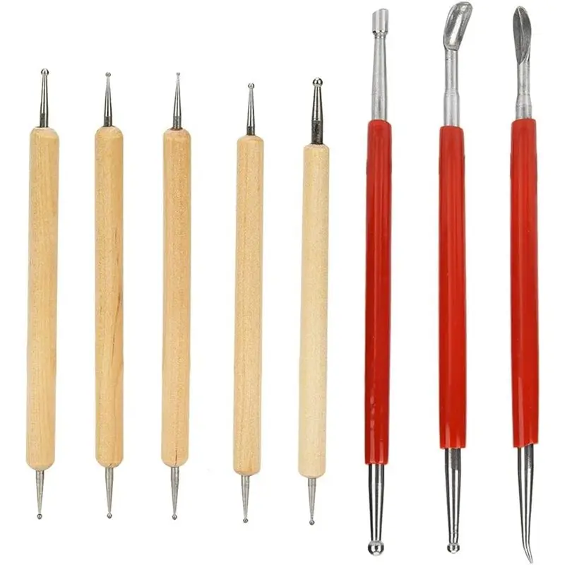 AB34-8Pcs Craft Tools,DIY Carving Stylus Kit Double Head Embossing Pen With Wood Handle,Sculpting Drill Pen Set For Stamping