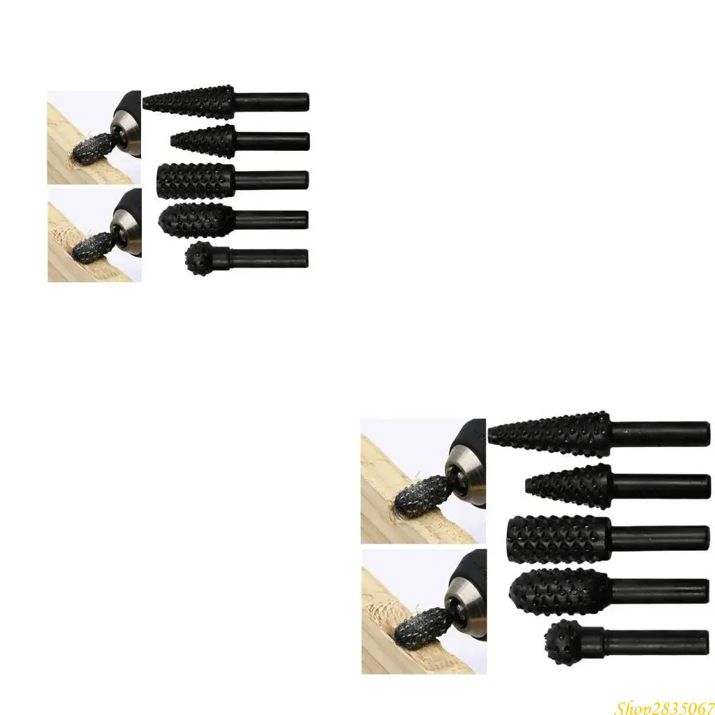 5PCS 1/4'' Drill Bit Rotary Rasp File Set for Woodworking Knife Carving Tool Carpentry Cutting Tools Bit Set 831F