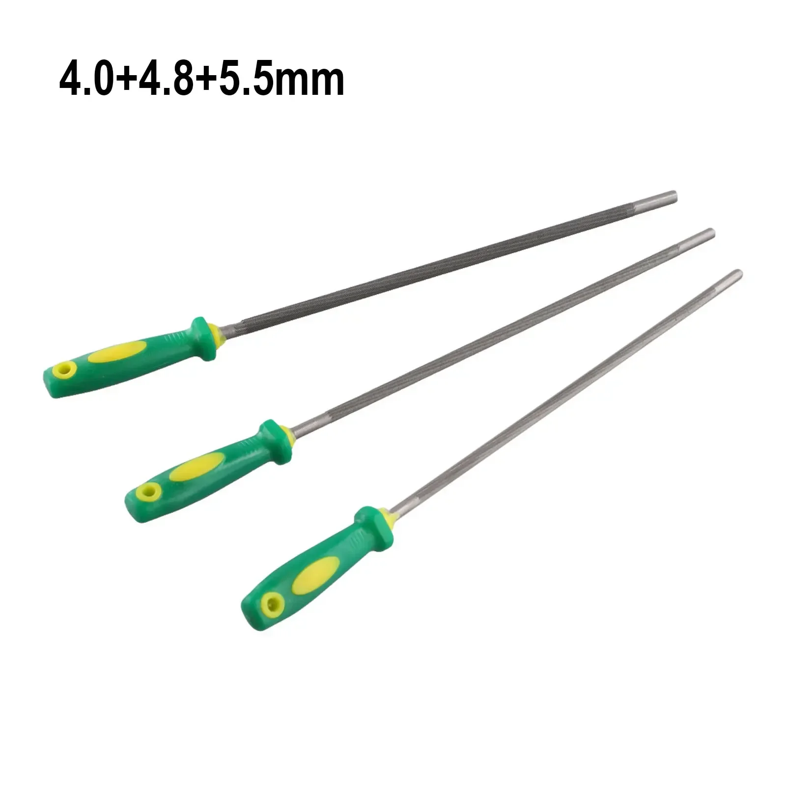 3pcs 4.0/4.8/5.5mm Round High Carbon Steel Sharpening Chainsaw Saw Chain Files Sharpener Plastic Handle Hand Tools
