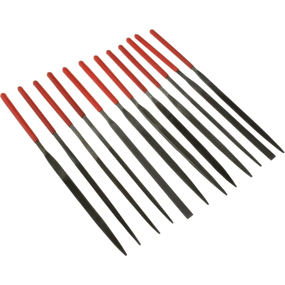 12-Piece Fine Cut Needle File Set in Assorted Shapes with Dipped Handles (3mm x 140mm)