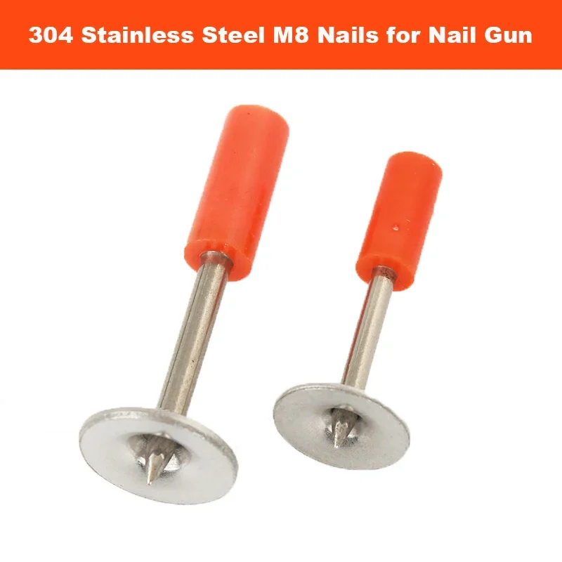 100PCS M8 Stainless Steel Nail 27mm/32mm/42mm Round/Naked Nail for 7.3mm/8.5mm Pneumatic Ceiling Nail Gun Fixed Peg Ceiling Tool