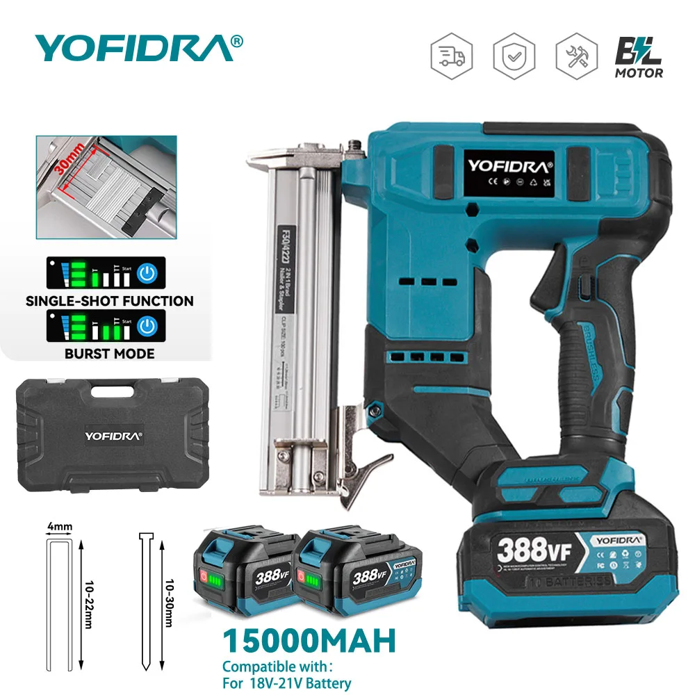 YOFIDRA 2 in 1 30mm Brushless Electric Nail Gun Nailer/Stapler Gun Framing Nailer Tacker Power Tool For Makita 18V Battery Pin
